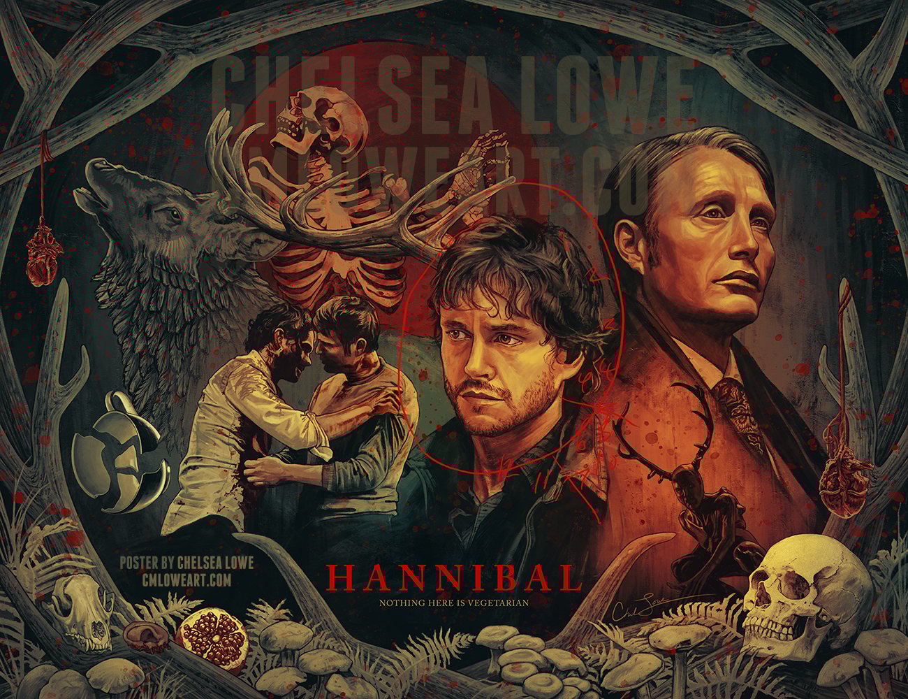 18 x 24 inch poster print of a digital painting tribute to Hannibal. Each print is signed by me, the artist.